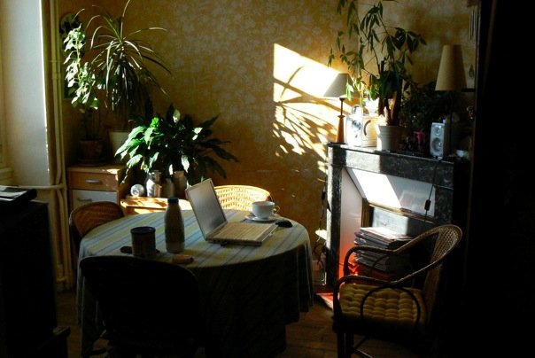 Pour ceux qui ont connu ce petit coin de paradis, la cuisine au bord de la rivière, avec son petit papier peint, et les carrés de lumière. 9 m2 de bonheur…