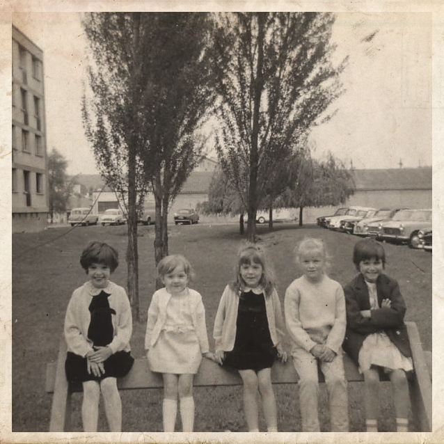 Je me souviens des petites robes de velours noir ornées de col de dentelle blanche, de nos gilets bleu ciel tricotés à la main, de nos collants de dentelle laissés sous le sapin à Noël, de nos souliers vernis.