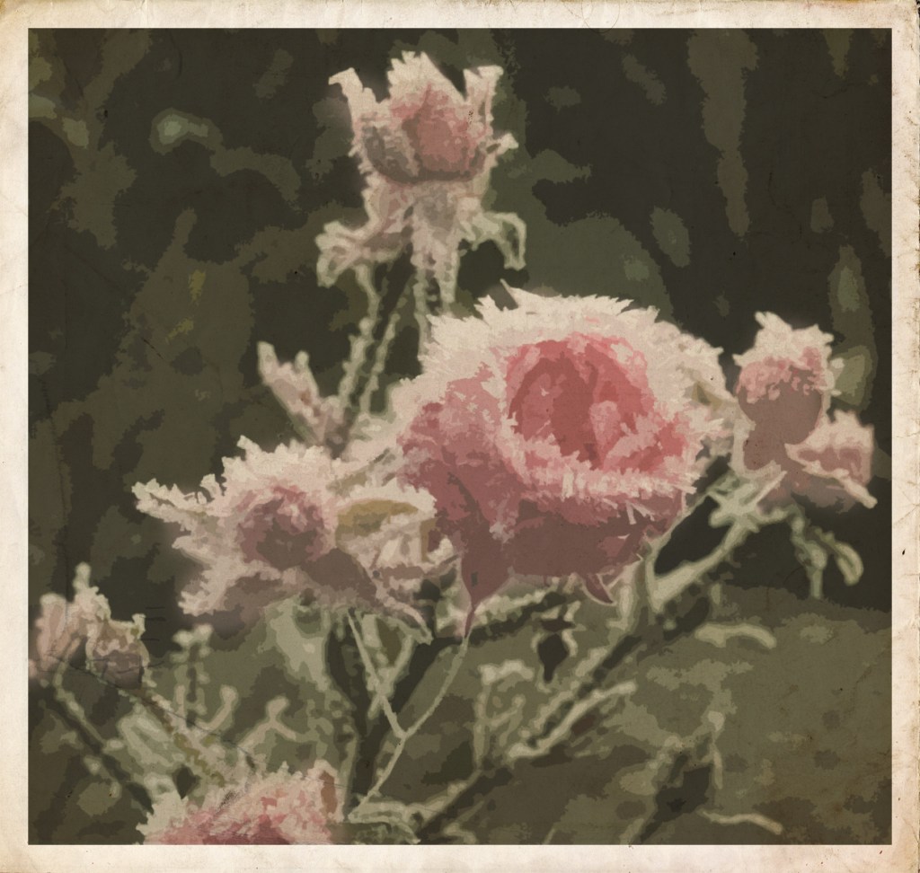 Quelques roses givrées tardent sur le rosier.